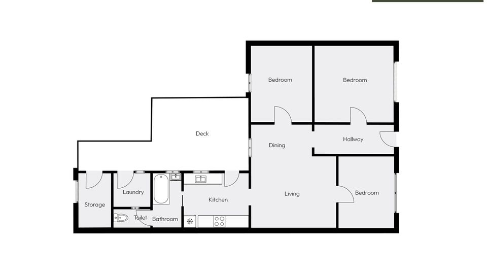 Outside, a sunny, well-appointed deck overlooks the flat, fully fenced section—a complete blank canvas ready for your personal touch.